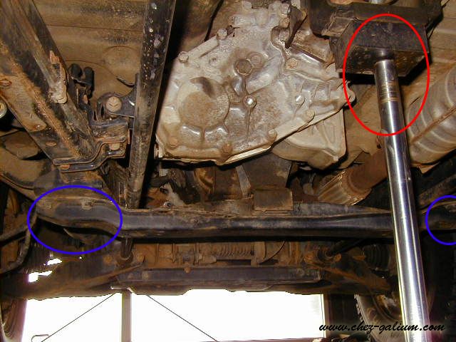 Soulageons le poids portant sur la traverse à enlevée, en plaçant une chandelle sous la boite de transfert.