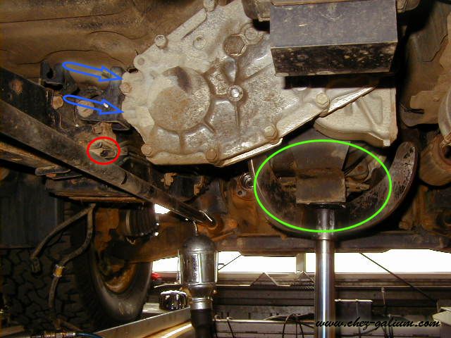 Mise en place au centre des boites (vitesses et transfert) de la chandelle, afin d'enlever le dernier point d'encrage de la boite de transfert.