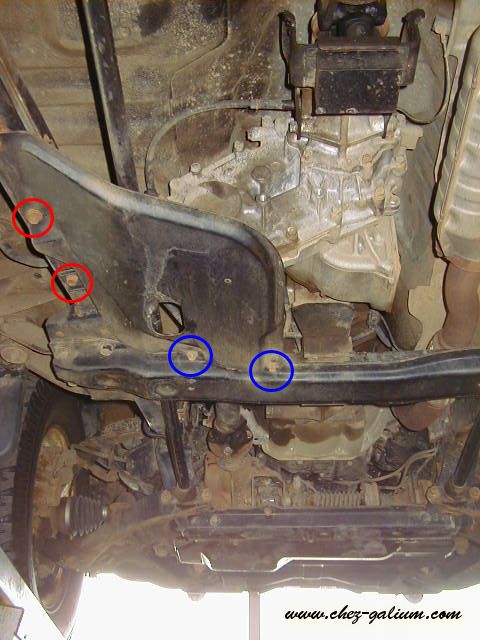 deux boulons sur la traverse (pour clé de 12)