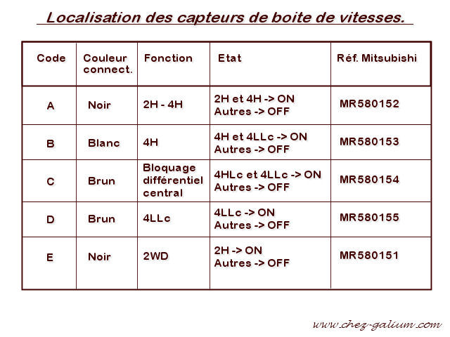Localisation et contrôle des 5 capteurs de boite de vitesses V5M31 (Pajero Did)